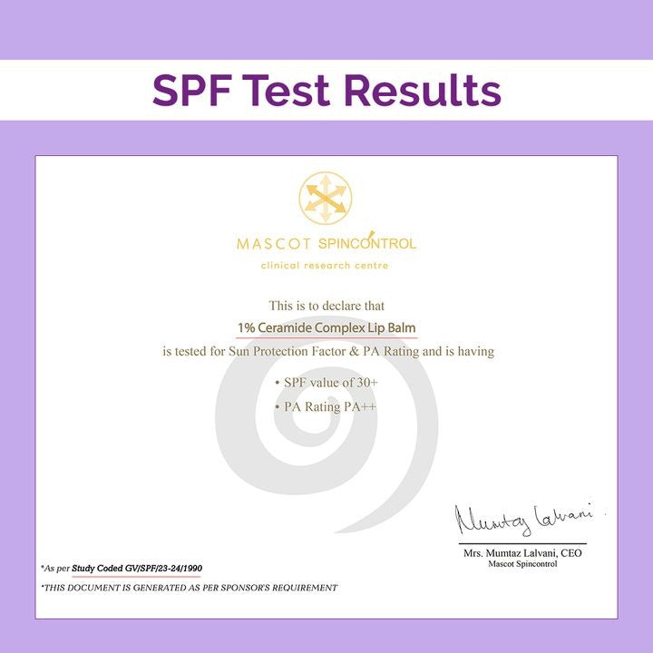- Ceramide Complex + Vitamin E: Helps repair and maintain the lip barrier and retain moisture.