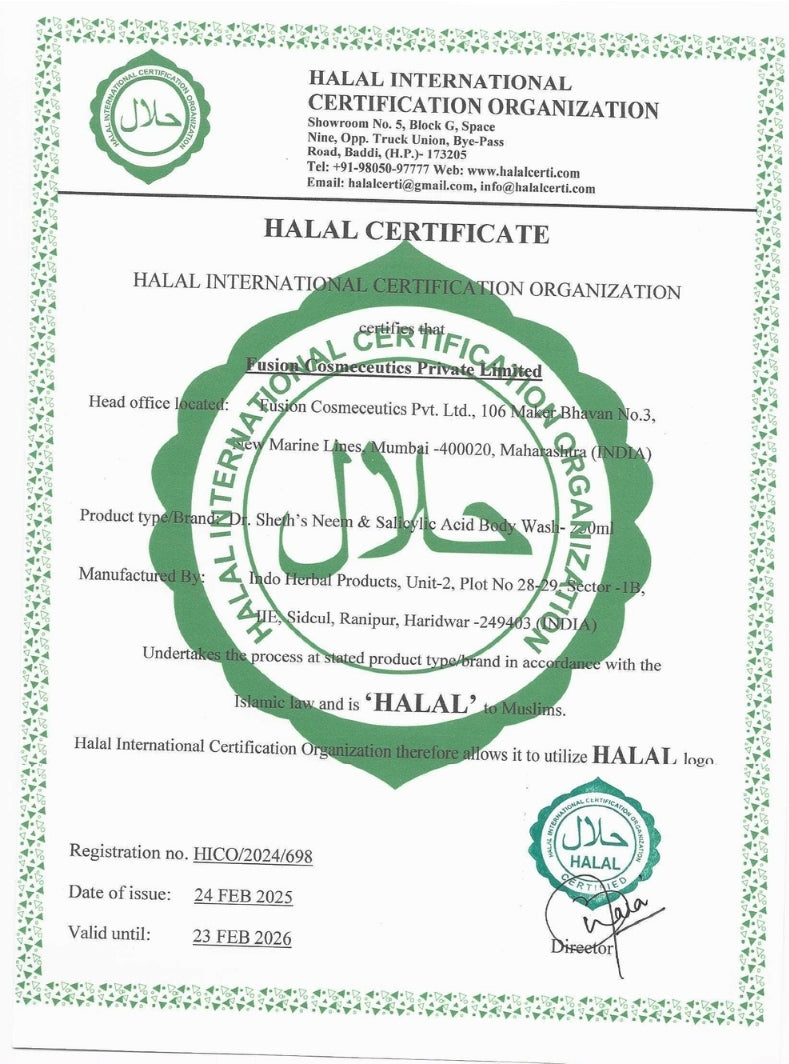 Dr. Sheth’s Neem & Salicylic Acid Body Wash has a gentle yet effective foaming formula that suits all skin types, especially oily & acne-prone skin.