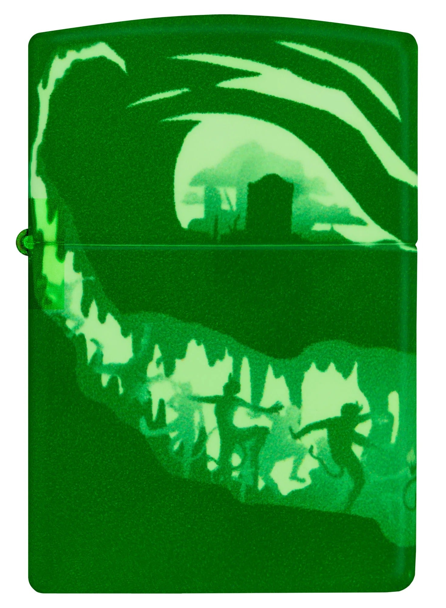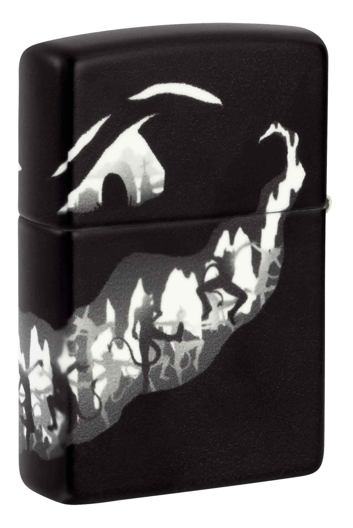 A wicked jack-o-lantern reveals devilish dancers beneath a frightening graveyard on this whimsical 540 Color lighter. The piece is treated with our specialty Glow-in-the-Dark finish for extra ghoulishness. Comes packaged in a gift box. For optimal performance fill with Zippo lighter fuel.