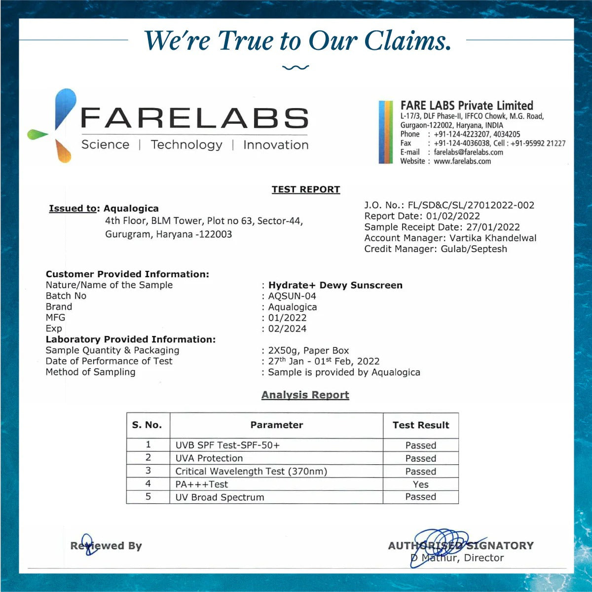 A Hyaluronic acid sunscreen offers two skin benefits: sun protection and hydration. It draws moisture into the skin, prevents dryness, plumps the skin, reduces fine lines, and keeps your skin youthful. It is lightweight, non-greasy, and ideal under makeup. Aqualogica Hydrate+ Dewy Sunscreen combines Hyaluronic Acid with SPF 50 and PA++++ for broad-spectrum protection.