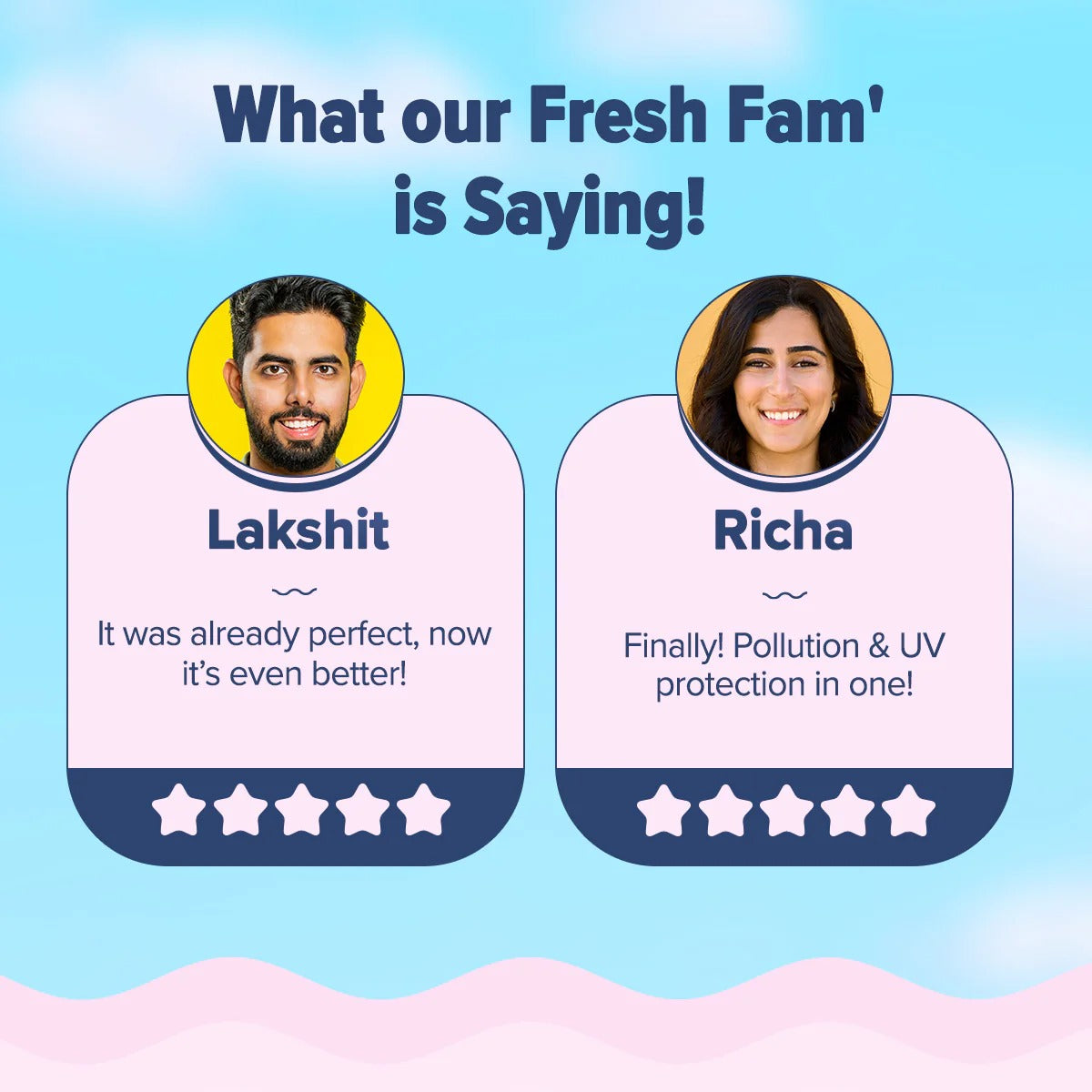 Oh, and here’s the game-changer: it’s India’s only sunscreen with SPPF (Sun & Pollution Protection Factor)—powered by advanced tech that defends your skin from harsh pollutants while keeping it radiant and oil-free. And the coolest part? It comes with a 5-star rated Anti-Pollution Factor (APF) that shields your skin from dust, smoke, and city grime. Consider your glow fully protected. You’re welcome!