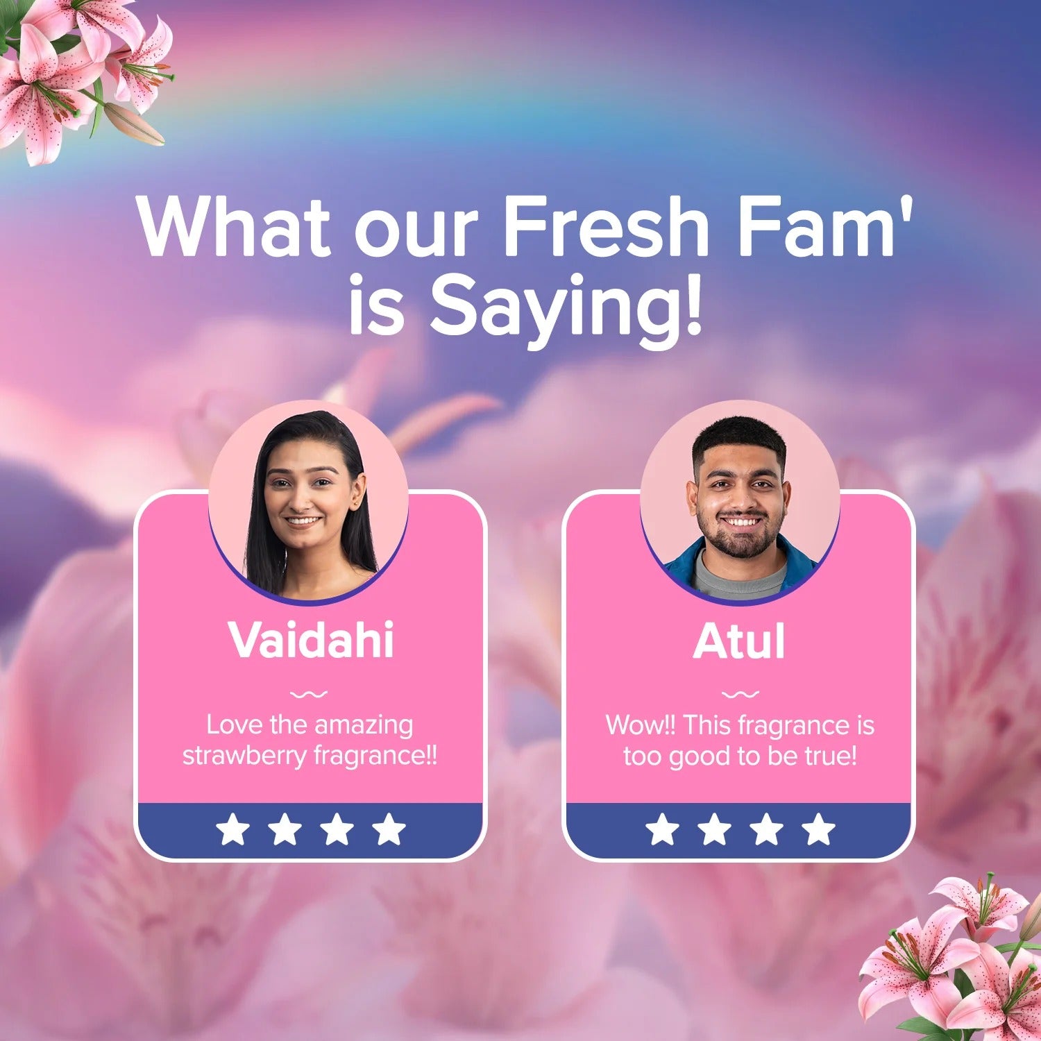Introducing Refresh+ Dewy Floral Kiss Perfume Body Mist, a charming blend of fresh lilies, a dash of citrus & a pinch of musk — straight from the Lily of the Valley.