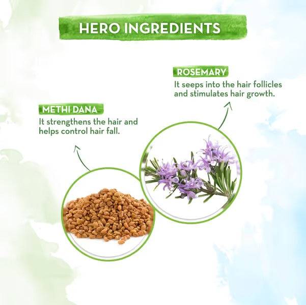 The shampoo is formulated to gently cleanse the scalp and hair while fortifying hair strands with natural actives like Rosemary, Methi Dana (Fenugreek), and nourishing oils — making hair stronger, softer, and less prone to breakage after each wash.